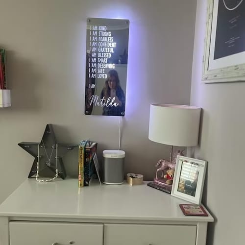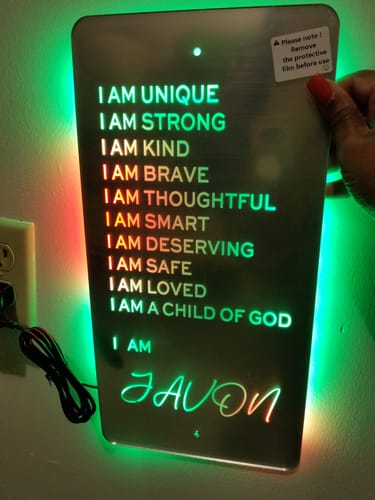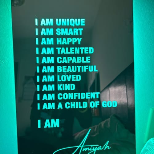 Tohle zrcadlo s prohlášeními je skvělé! Možnost přizpůsobit si svou vlastní motivující zprávu každé ráno mě nabíjí na celý den. Skvělý nápad, jak zůstat pozitivní!