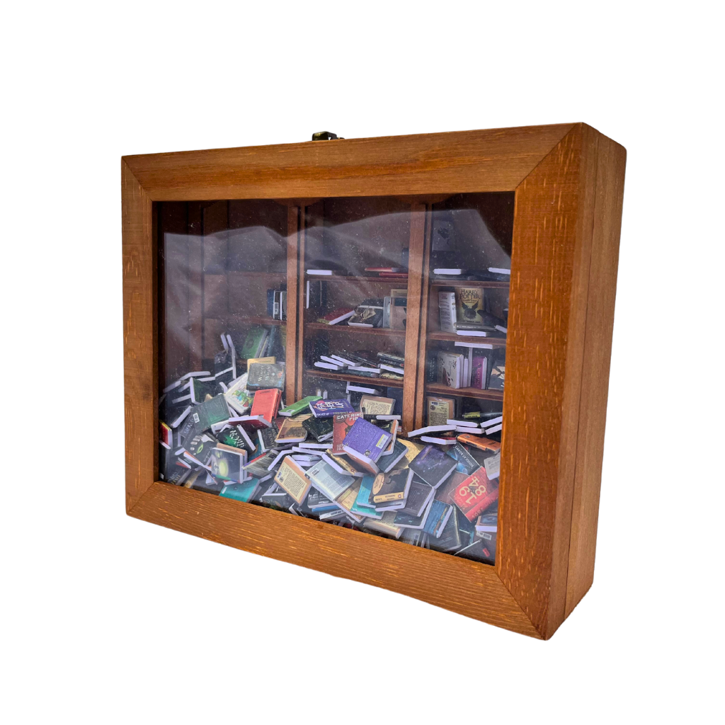 ハンドメイドの木製本棚は、不安な気持ちを和らげてくれます。ミニブックを片付けたら、ケースを閉じてラッチをはめてください。ストレスがぶり返したら、本棚を揺すってすべてを混ぜて、また始めましょう。)
